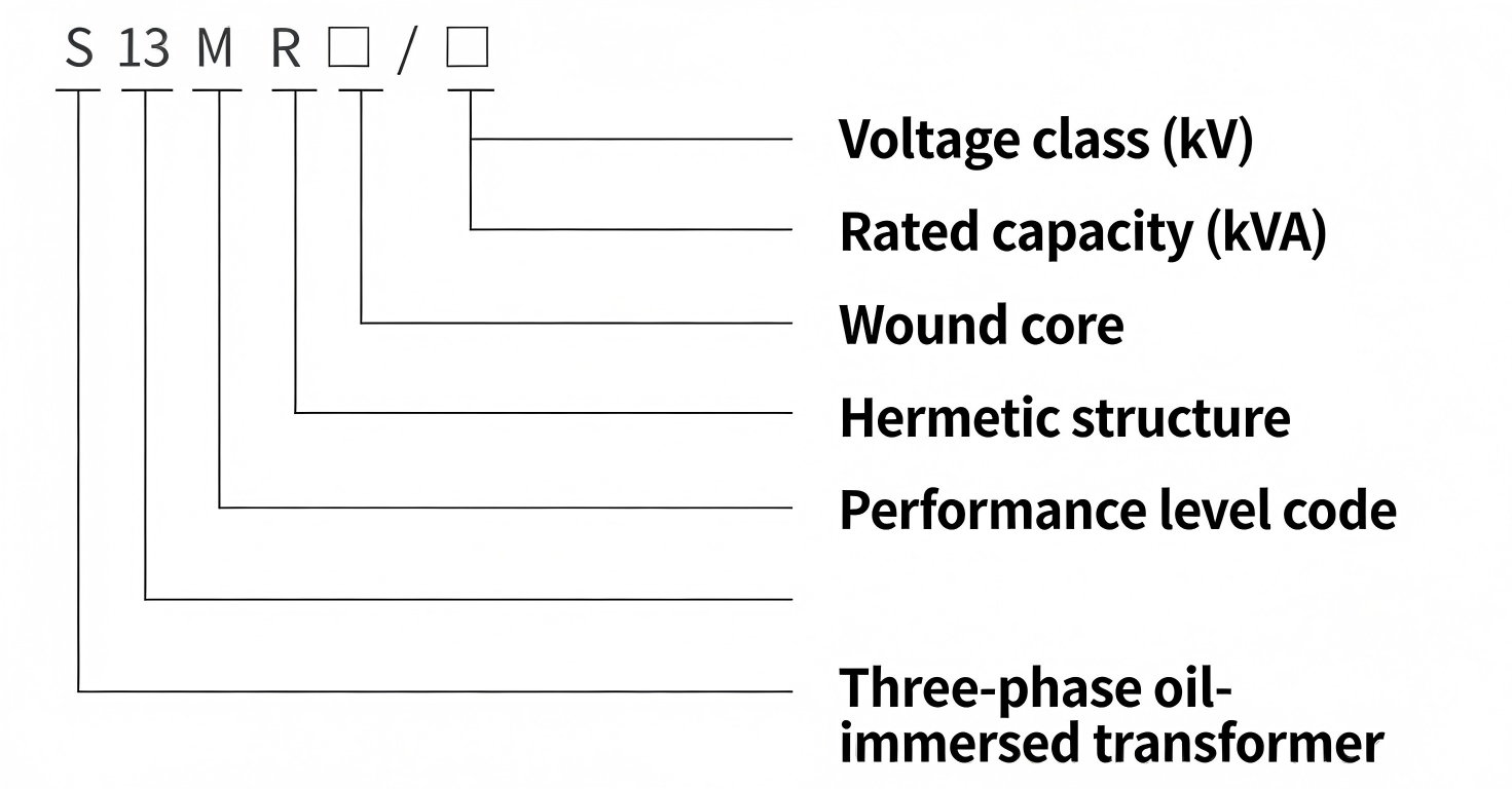 The coding of the product model contains the core structural characteristics and parameter information of the transformer. The specific meaning of each part of the model is as follows: