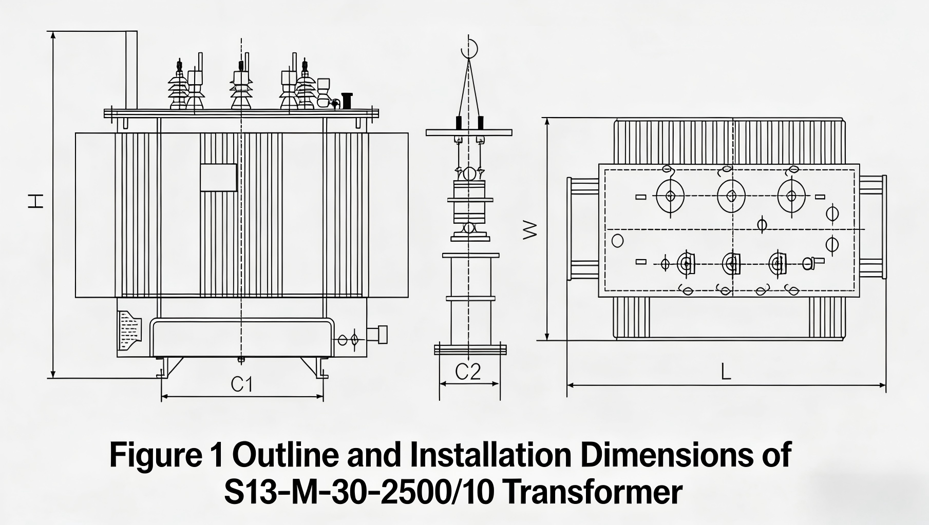 2. For technical parameters of 10kV distribution transformers with larger capacities, please consult our company for external dimensions and weight data.