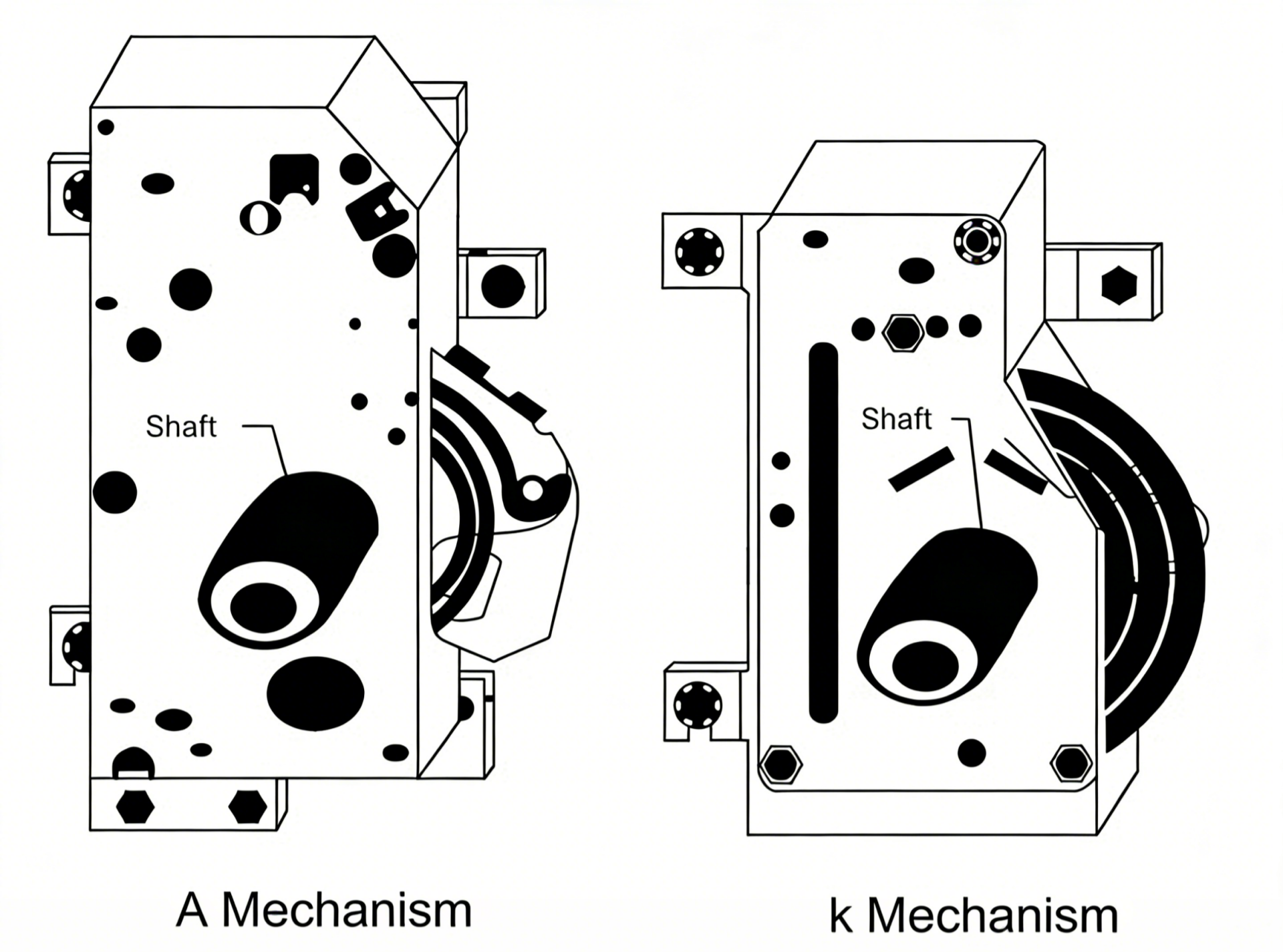 • Type K Mechanism:The Type K mechanism is a single-spring mechanism for the closing and opening operations of load switches. The switch’s closing and opening actions are achieved via spring energy storage through a dead point. An electric motor can be optionally fitted to the Type K mechanism for motorized operation.