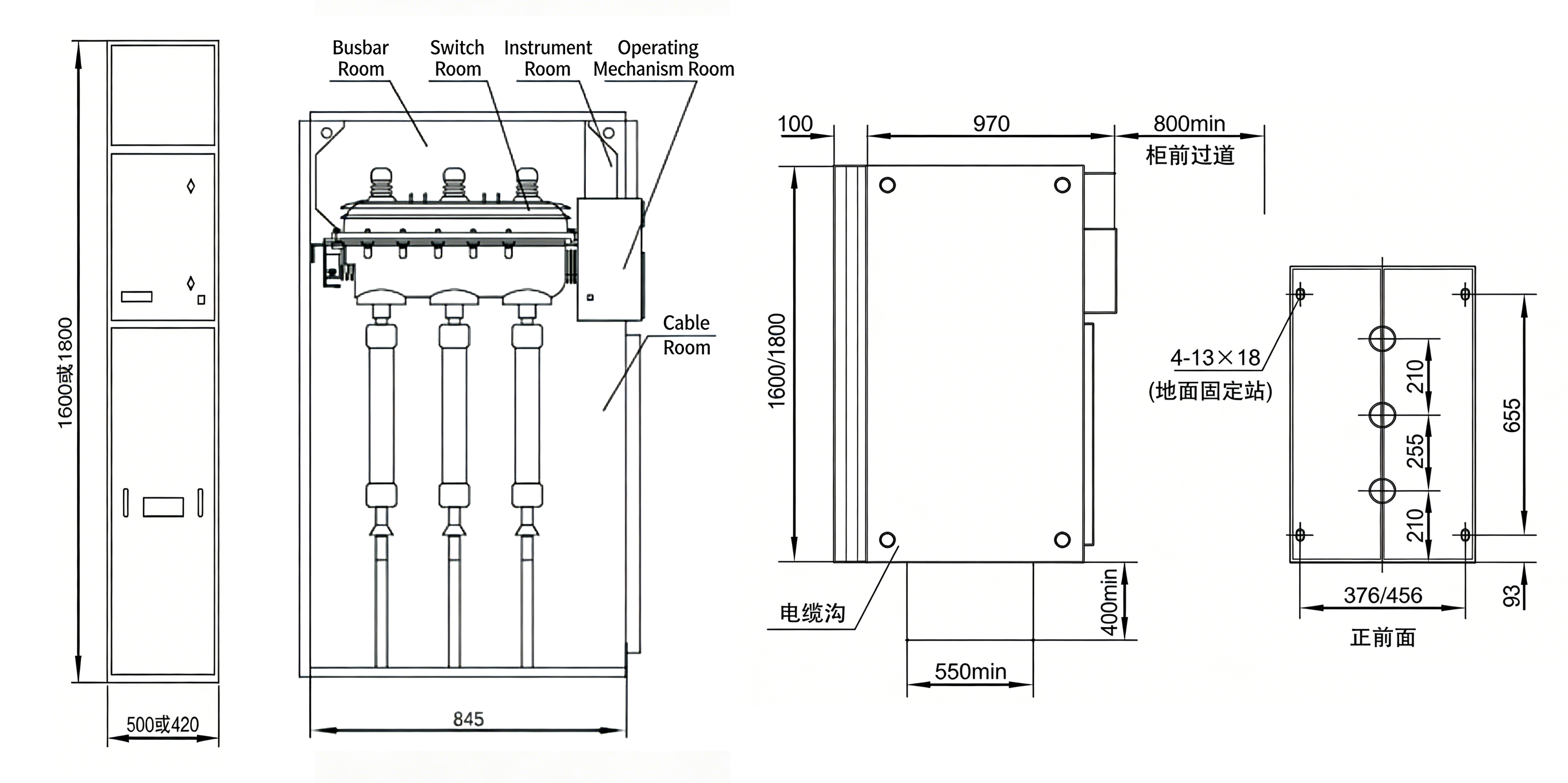 • The switch allows both vertical and horizontal installation without restriction. In unit-type cabinets, the typical installation method is horizontal mounting with a steel partition plate installed between the cable compartment and the busbar compartment.