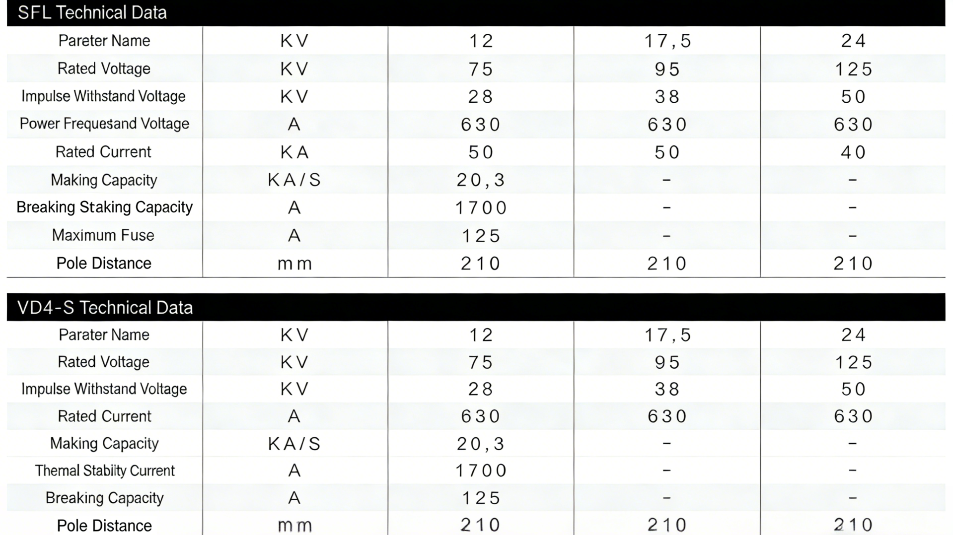 8Short-circuit Breaking Current of Load Break SwitchkA31.5,40