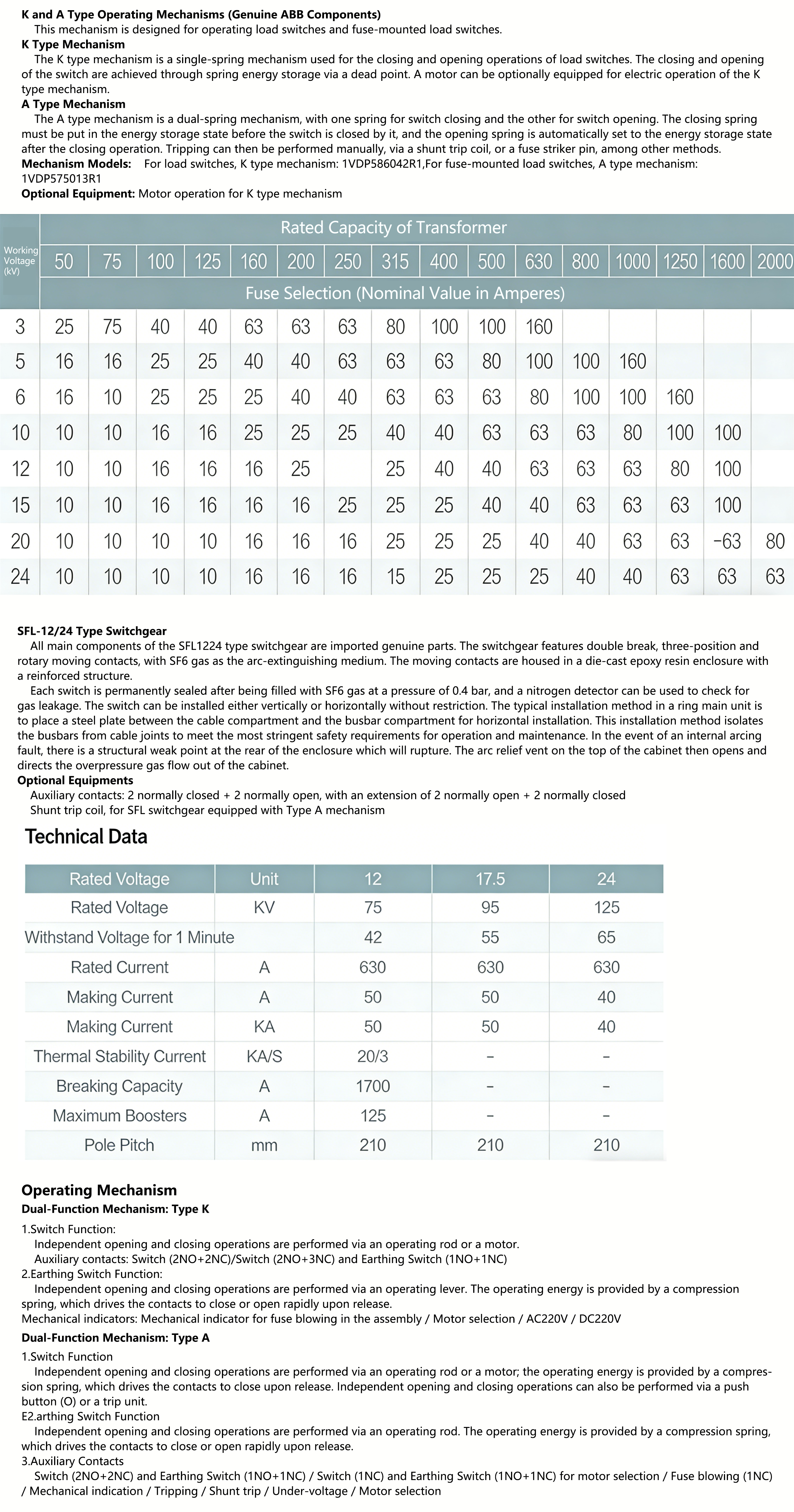• Mechanism Model Numbers:For load switches,Type K Mechanism: 1VDP586042R1,For fuse-integrated load switches,Type A Mechanism: 1VDP575013R1