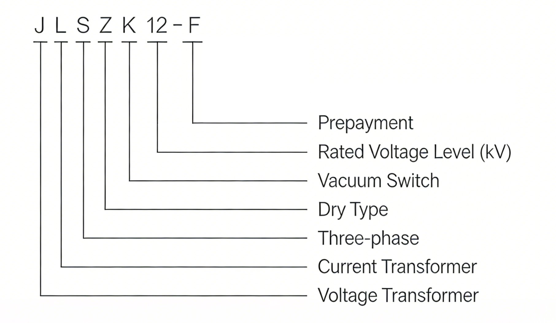 The coding of the product model contains the core structural characteristics and parameter information of the transformer. The specific meaning of each part of the model is as follows: