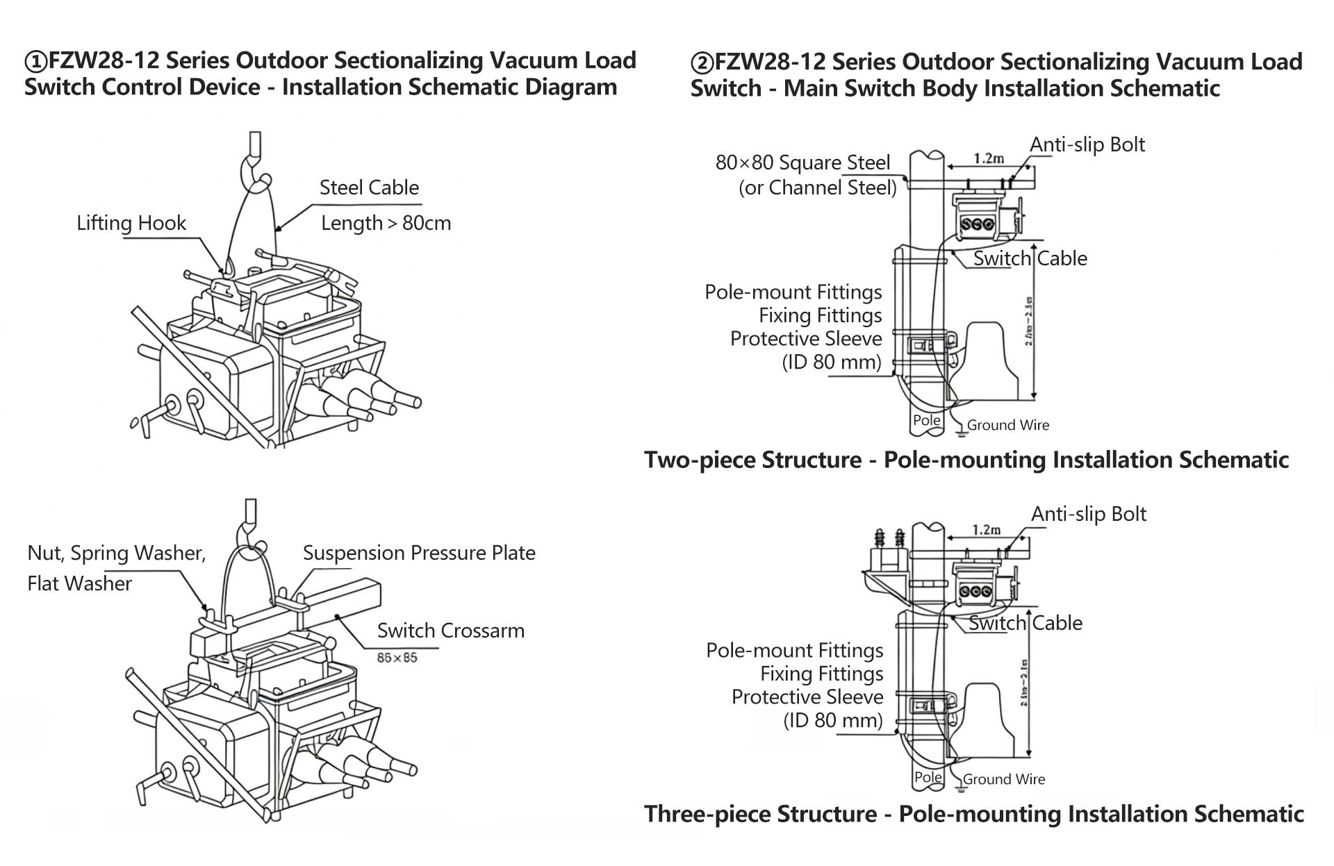 The FZW28-12F series outdoor pole-mounted vacuum load break switch is suitable for outdoor three-phase AC distribution systems with a rated voltage of 12kV and a rated frequency of 50Hz, and is used for making, breaking and carrying rated load current and short-circuit current. The FZW28-12F series outdoor pole-mounted vacuum load break switch is applicable to substations, industrial and mining enterprises, urban and rural protection and control fields, power grid automation power networks and places with frequent operation.