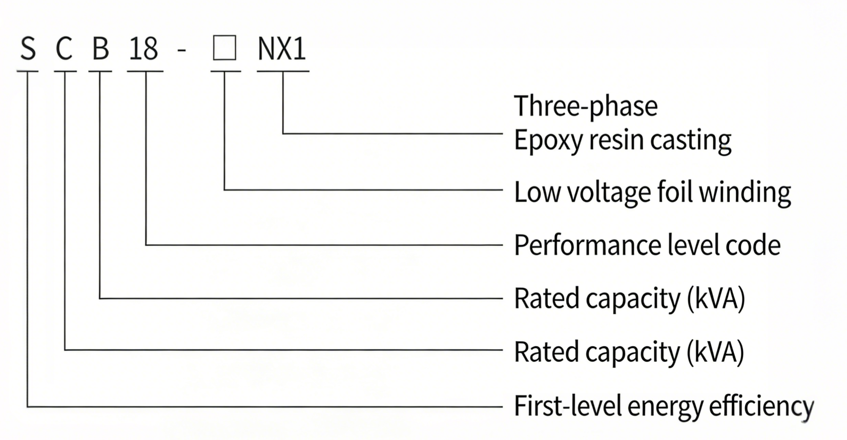 - Blank space: Rated capacity code (kVA)