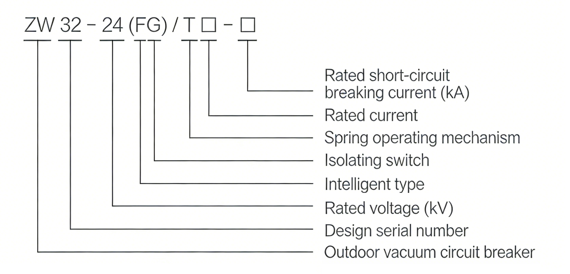 The coding of the product model contains the core structural characteristics and parameter information of the circuit breaker. The specific meaning of each part of the model is as follows:
