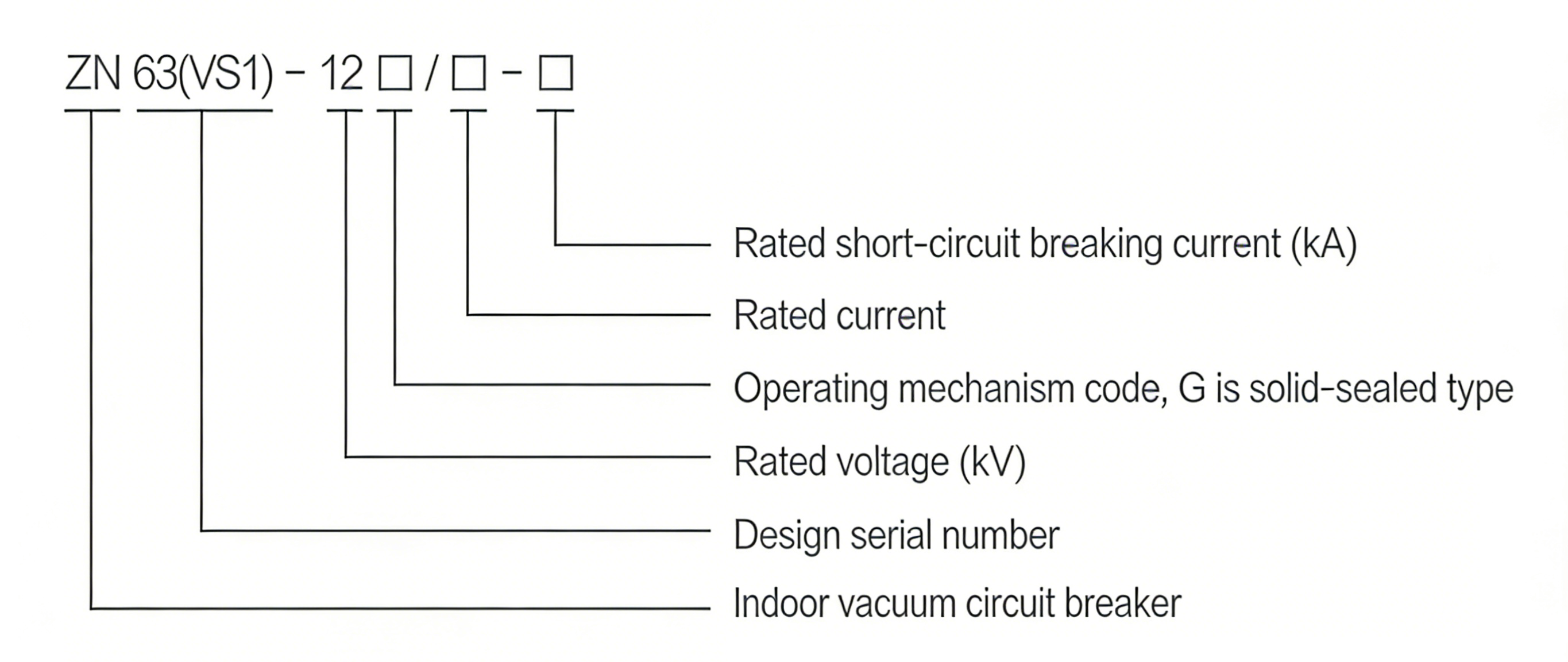 The coding of the product model contains the core structural characteristics and parameter information of the vacuum circuit breaker. The specific meaning of each part of the model is as follows: