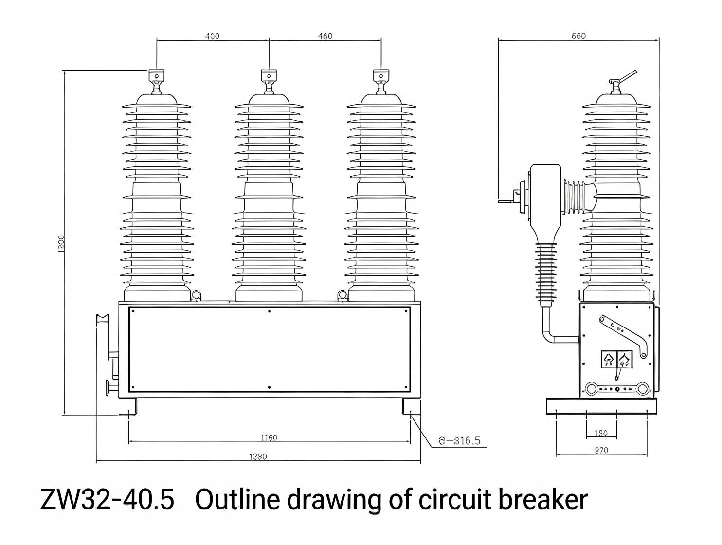 The ZW32-40.5 type outdoor high-voltage vacuum circuit breaker adopts a specially designed integrated solid-sealed pole and a highly reliable operating mechanism. This device is mainly used in medium-voltage overhead power lines for switching on and off load current, overload current, and short-circuit current.