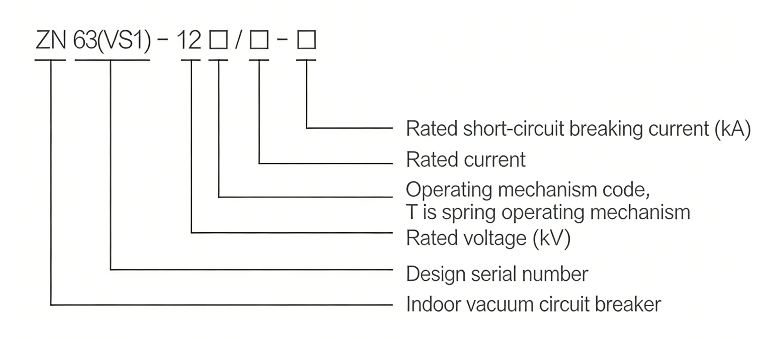 The coding of the product model contains the core structural characteristics and parameter information of the vacuum circuit breaker. The specific meaning of each part of the model is as follows: