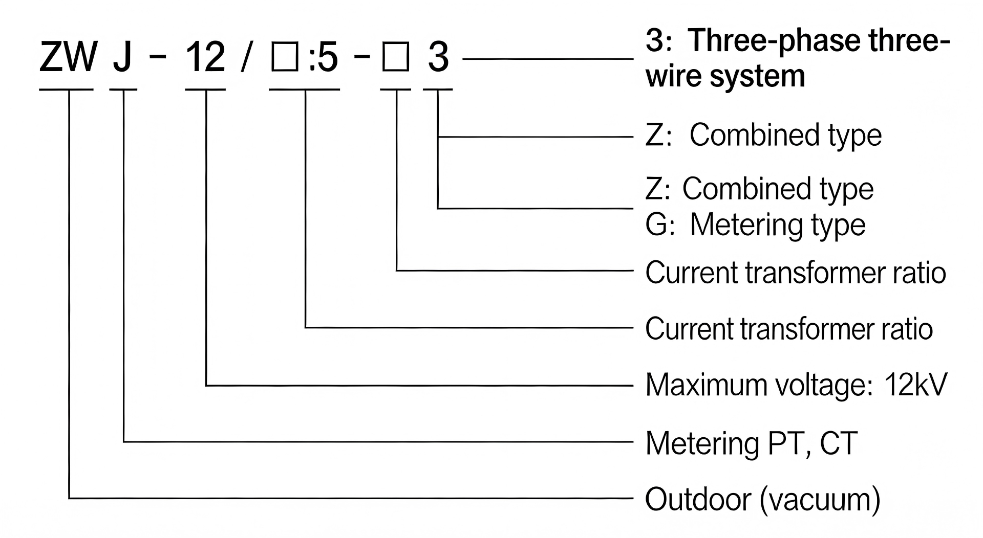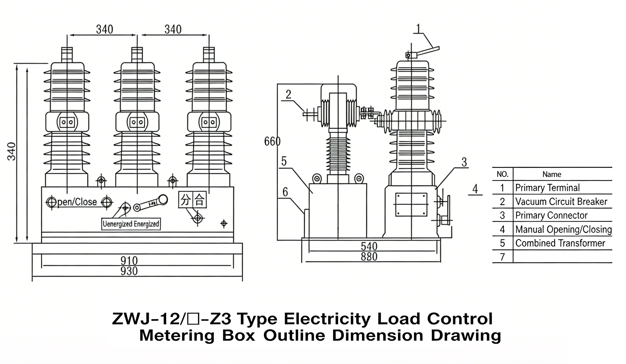The ZWJ-12/□-3 type electrical load (metering) control box is composed of outdoor vacuum circuit breaker, metering voltage transformer and metering current transformer. Both voltage transformer and current transformer adopt epoxy resin fully sealed casting structure, with excellent insulation performance.