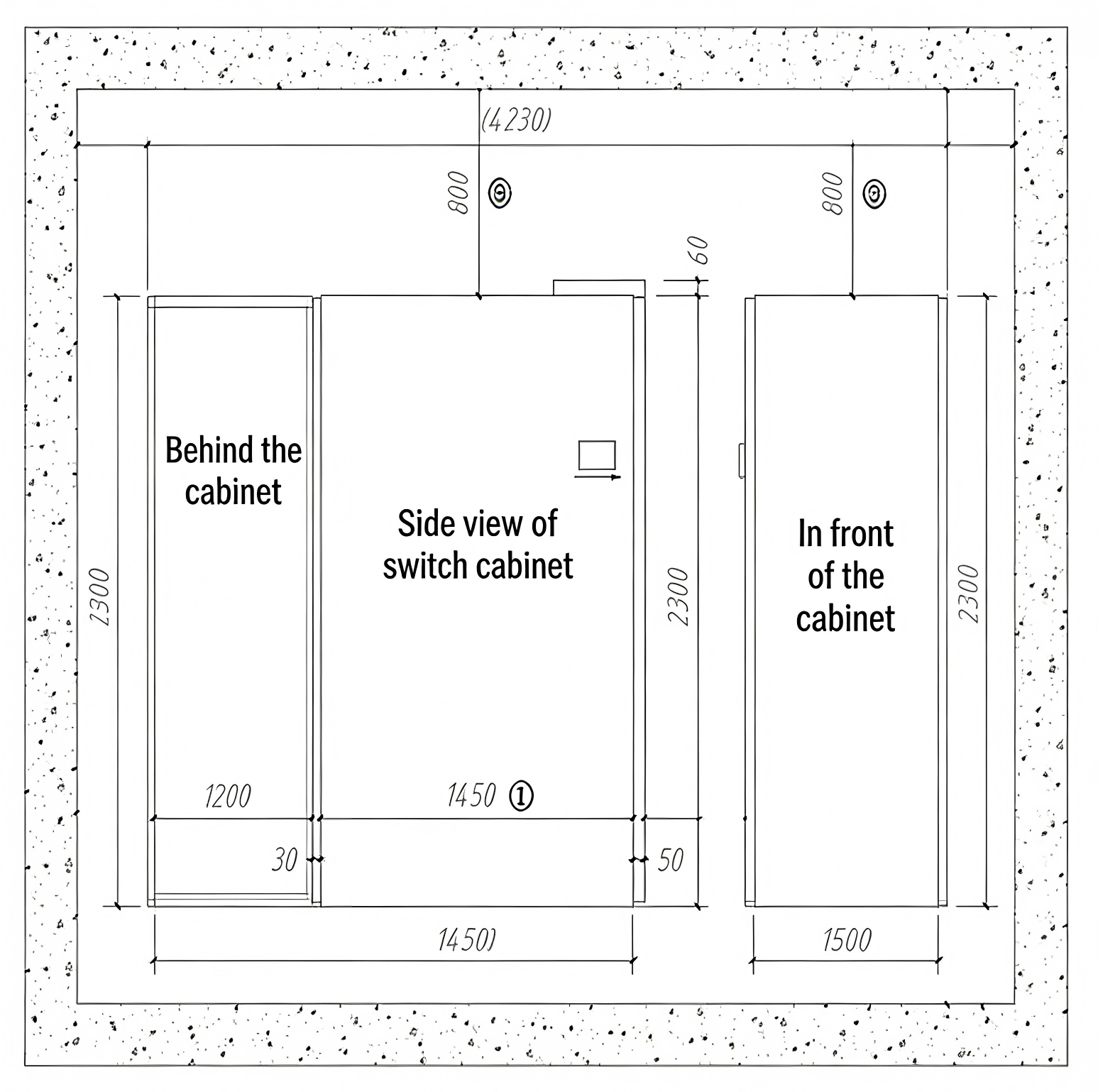 ② If the switchgear is arranged in double rows face to face, only 2500mm is reserved for this dimension;