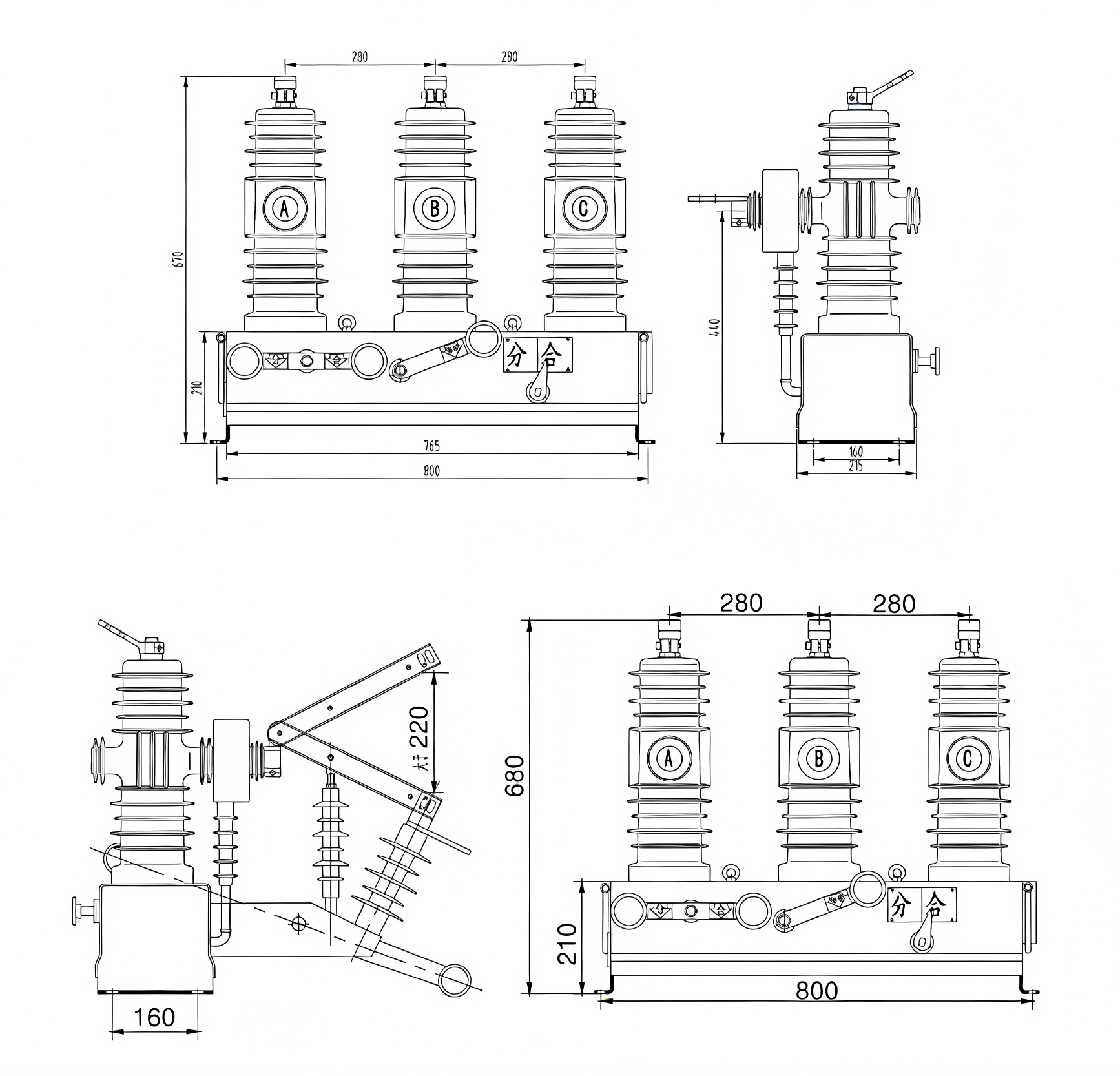 The ZW43-12(G) outdoor high-voltage vacuum circuit breaker (hereinafter referred to as the switch) is a three-phase AC 50Hz outdoor switchgear with a rated voltage of 12kV. The switch is mainly used as an outgoing switch for 10kV substations and in 10kV three-phase AC power systems to close and carry rated current, and open overload current and short-circuit current for line protection. The circuit breaker complies with technical standards such as GB1984-2003《Alternating-current high-voltage circuit-breakers》, DL/T402-2007《Technical specification for ordering alternating-current circuit-breakers》and DL/T403-2000《Technical specification for ordering 12kV~40.5kV vacuum circuit-breakers》.